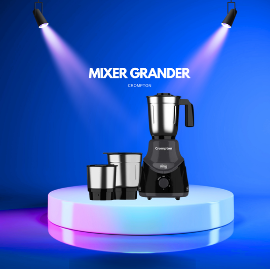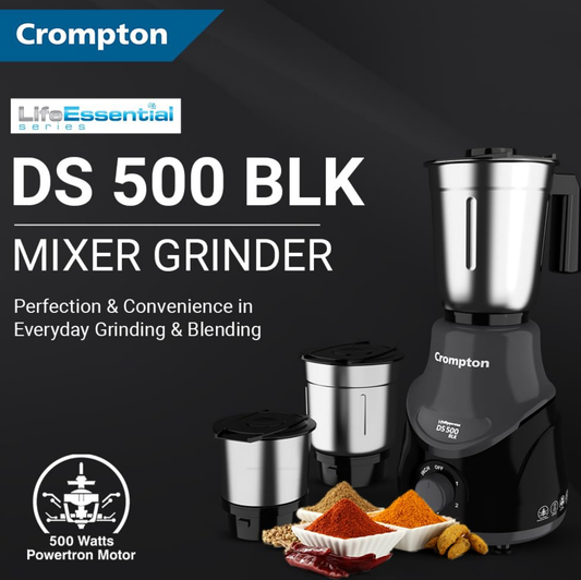 Crompton DS 500 BLK 500-Watt Mixer Grinder with Powertron Motor & Motor Vent-X Technology (3 Stainless Steel Jars, Black & Grey)